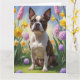 Un chien joyeux est assis paisiblement sur une herbe verte luxuriante, entouré de floraisons printanières colorées sous un ciel bleu doux. Cette peinture numérique à l'huile capture un moment serein avec des coups de pinceau expressifs, des couleurs chaudes et un sentiment de joie douce.