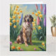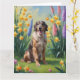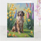 Un chien joyeux est assis paisiblement sur une herbe verte luxuriante, entouré de fleurs printanières colorées sous un ciel bleu doux. Cette peinture numérique à l'huile capture un moment serein avec des coups de pinceau expressifs, des couleurs chaudes et un sentiment de joie douce.