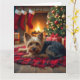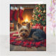 Un Yorkshire Terrier charmant se détend au feu la veille de Noël. Cette peinture chaude et invitante apporte un réconfort classique des fêtes à n'importe quelle maison ou collection de cadeaux.