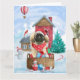 Carte Pékinois dans une maison de chien de Noël enneigée