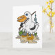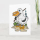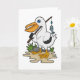 Carte Pélican en pêcheur avec canne à pêche et poisson