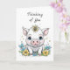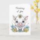 Carte Pense à toi ! Cochon mignon aux fleurs jaunes