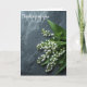Pensées pour vous, condoléances, carte de sympathie. Lys des Vallées sur fond d'ardoise avec 'pensée' modifiable à l'avant et 'message' modifiable à l'intérieur pour vos propres mots.