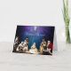 Belle scène de Nativité avec un ange dans le ciel nocturne avec le Père Noël regardant la scène. Cadeau chrétien unique pour Noël.