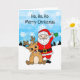 Joyeux Noël et Bonne Année dessinés à la main dessin animé mignon Père Noël et rennes avec fond de flocons de neige carte de vacances.
