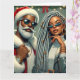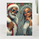 Père Noël et son compagnon sont prêts à célébrer, tous deux vêtus de tenues de Noël élégantes. Ils se tiennent sur un fond de lumières et de décorations de fêtes, prêts pour une réunion festive.