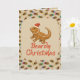 Cette carte de vacances fantaisiste présente un dragon barbu de style pain d'épice portant un chapeau de Père Noël avec le jeu de mots ludique « Beardy Christmas », entouré de blattes festives en nœuds colorés. Une touche amusante aux salutations traditionnelles des Fêtes, cette carte est parfaite pour les amateurs de reptiles, les fans d'animaux exotiques ou quiconque apprécie l'humour de Noël unique. Partagez la joie festive avec cette carte inhabituelle et mémorable, idéale pour être envoyée à des amis et à la famille qui apprécient le style fantaisiste.