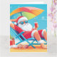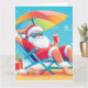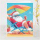 Apportez une touche tropicale aux fêtes avec un design ludique mettant en vedette le Père Noël se prélassant sur un transat au bord de la plage. Avec des lunettes de soleil, une boisson festive et des palmiers qui se balancent sous un ciel ensoleillé, ce design joyeux est parfait pour un Noël à thème vacances.