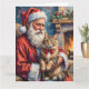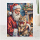 Carte Père Noël tenant l'art de Noël du chat sibérien