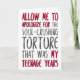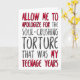 Permettez-moi de m'excuser pour la torture écrasante que furent mes années d'adolescence