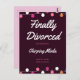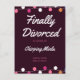 Célébrez un nouveau départ avec notre carte postale Purple Customisé Divorce Party. Ce design vibrant est doté d'une teinte violette riche, symbolisant l'autonomisation et la transformation. Personnalisée pour refléter votre voyage unique, la carte allie une typographie élégante à un agencement ludique pour donner un ton joyeux et libérateur à l'événement. Idéal pour marquer ce changement de vie significatif, l'invitation met en évidence tous les détails essentiels avec style et flair. Faites de votre fête de divorce une célébration mémorable de l'indépendance et de nouvelles opportunités avec cette carte distinctive et personnalisée.