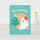 Personnalisez cette carte avec votre texte personnalisé. Le texte par défaut indique Joyeux Spitz Noël - ce chiot Spitz kawaii-mignon est prêt pour Noël.