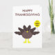 Cette drôle de carte Thanksgiving présente un drôle de dessin d'une dinde aux grands yeux noirs, un petit bec jaune et des plumes de queue qui s'accrochent. Les pieds sont orientés dans des directions opposées, ce qui rend la dinde maladroite. La dinde tient un ballon jaune avec un message à l’intérieur qui dit "c’est l’heure de la dinde". C'est un design de fête de grâce amusant. Il y a un accueil personnalisable sur le devant de la carte. L'intérieur de la carte est vide.