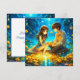 Personnalisé anime fille et garçon sur une soirée romantique carte Saint Valentin. Jolies fleurs bleues et dorées et réflexion d'eau.