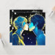 Personnalisé anime fille et garçon moment romantique s'embrasser devant les étoiles. Carte Saint Valentin.