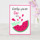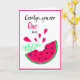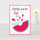 Faites la journée de votre ami(e) avec cette carte de vœux amusante avec le jeu de mots : Vous êtes un dans une pastèque. Vous pouvez la personnaliser avec n'importe quel nom. Elle a un style de dessin animé simple avec une tranche de pastèque rose vif avec une bouchée prise, et des cœurs roses assortis au-dessus. Vous pouvez également personnaliser le message à l'intérieur (ou le supprimer si vous voulez en écrire un à la main). C'est une excellente carte de la Saint-Valentin, ou pour dire merci.