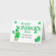 Une carte de vœux artistique et amusante pour la Saint-Patrick, à personnaliser avec le ou les noms du ou des destinataires, avec un lutin malicieux tenant un bouquet de trèfles et des grappes de trèfles dans chaque coin. Le message de la couverture est "Joyeuse Saint-Patrick" avec les mots "Saint-Patrick" remplis de motifs verts et blancs. En dessous, en écriture noire sur fond blanc, on lit "Je vous souhaite la chance des Irlandais" suivi d'un espace pour ajouter la personnalisation. Vous pouvez également modifier le message à l'intérieur selon vos besoins ou le supprimer complètement si vous le préférez.