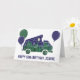 Créez une carte d'anniversaire personnalisée. Cette carte de vœux pliée est prête à être personnalisée avec votre propre message sur le devant et à l'intérieur et comporte une illustration d'un ventilateur de camping-car avec une tente pop-up sur le toit et est illustrée pour ressembler à une nuit au clair de lune dans la forêt avec une pleine lune dans un ciel indigo rempli d'étoiles qui brille sur un bosquet de conifères.