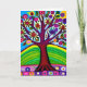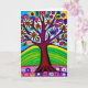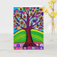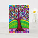 Carte d'anniversaire de tante. OEuvre d'art blanc coloré. Arbre en fleurs et feuilles jaunes, blancs, bleus et violets. L'IA a généré de l'art.