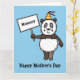 Cette petite illustration charmante montre un panda mignon portant un chapeau de fête et tenant une banderole personnalisée.
