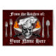 Partagez vos recettes de tueur sur ces cartes de note de recette de chef de crâne. Cette carte fraîche et chique de recette tient compte de l'abondance de la pièce d'inclure une longue liste d'ingrédients importants, aussi bien que des instructions de cuisson détaillées. Elle comporte un plateau fané charismatique métallique-comme le crâne de chef devant deux couteaux flamboyants de chef croisés par dièse et et argenté, sur un fond de damassé. L'outil de personnalisation vous permet d'enlever la conception d'arrière - plan, afin de choisir une couleur pour assortir votre style. La police peut être aussi bien changée. Un amusement et un cadeau unique pour le chef principal, le chef sous, le cuisinier de maison, la ligne cuisinier, ou n'importe qui avec une passion féroce pour faire cuire la nourriture de tueur !