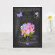 Cette carte au look luxueux présente des illustrations de fleurs dessinées à la main de bouquets de fleurs de naissance et de pierres de naissance brillantes pour les anniversaires d'avril, les anniversaires de mariage et les jours spéciaux. Un tableau noir avec des gravures antiques de quincaillerie décorative fournit un fond nostalgique pour les bouquets de fleurs, les gemmes et les papillons parés de bijoux.