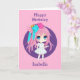 Carte d'anniversaire pour une petite fille avec une jolie petite fille d'anime rose et violet. À l'intérieur de la carte, vous pouvez la personnaliser et ajouter le nom de votre fille ou de votre petite-fille.