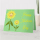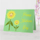 Cette carte incroyable pour la fête des mères présente une image de design graphique d'un beau tournesol jaune avec une tige verte et des feuilles et des tournesols jaunes brillants. Le tournesol de la mère a des yeux gentils et un sourire sur le visage. Il y a un tournesol plus petit à côté de la fleur de la mère et sa feuille touche la feuille du tournesol enfant offrant amour et soutien. Un beau design pour n'importe quelle mère le jour de la fête des mères. Il y a un texte personnalisé à l'intérieur pour que vous puissiez personnaliser cette carte avec votre propre message.