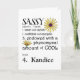 C'est un moderne, marquant avec des lettres l'avant rempli avec quelques marguerites jaunes lumineuses sur un arrière - plan blanc. Il commence par le mot impertinent dans une grande police audacieuse qui est suivie de la définition d'impertinent, ou au moins la définition pour la personne la plus impressionnante vivante ! La dernière entrée à la définition est là pour que vous customisiez avec le nom de destinataires ou probablement vous pouvez ajouter un peu plus à la définition. Quels choix d'amusement ! J'ai pensé que j'aurais de l'amusement avec cette carte ainsi j'ai fait à la police intérieure une police idiote d'amusement avec une marguerite sur le dessus mais vous pouvez changer la police en quelque chose que vous aimez mieux, particulièrement si vous voulez quelque chose moins idiote. La marguerite intérieure peut être aussi bien enlevée. Pour la compléter j'ai ajouté le texte au dos de la carte mais encore vous pouvez l'enlever ou la changer comme vous voudrez.