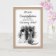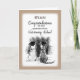 Un croquis noir et blanc du dos d'un chien et d'un chat regardent à l'intérieur. Ils utilisent des casquettes d'obtention du diplôme pendant qu'ils attendent. Un contour de brun encadre le croquis animal mignon. Personnalisez cette carte avec le nom du diplômé vétérinaire pour des félicitations faites sur commande sur une obtention du diplôme vétérinaire.