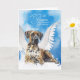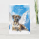 Un beau Grand Danois avec des marques arlequines dans tan, blanc et gris charbon de bois se marie avec un doux message de sympathie.