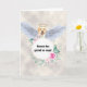 Une jolie couronne ronde en faux or d'aquarelle bordée de feuilles d'eucalyptus et de roses roses florales a le visage d'un chien de repérage du Labrador jaune ou doré qui regarde au-dessus du bord supérieur. Le chien a de longues ailes d'ange étendues et un faux halo d'or et regarde vers le bas sur le libellé; le ciel a gagné un ange. L'intérieur a le poème appelé "Un pont appelé amour" Personnalisez la couverture et le message intérieur de sympathie à un membre de la famille ou un ami pour leur faire savoir que vous êtes là pour eux pendant leur période difficile de perte.