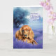This is a beautiful and sentimental pet sympathy card for someone whose heart is aching from the loss of their Cocker Spaniel dog. It features cool tones in purple, teal and blue with a foggy landscape and a field of lavender.