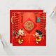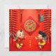Festive salutation traditionnelle chinoise avec pétards, noeuds chanceux et nuages auspicieux + coupé en papier du Cheval d'or + deux enfants mignons pour souhaiter Bonne Année. Conception sur carte à plat carré avec des textes pour customiser pour la célébration du Nouvel An chinois. Carte de voeux verticale et carte postale de vacances + enveloppe rouge pour les enfants, autocollant et plus bientôt... Parfait pour le Nouvel An Chinois du Cheval 2026.
