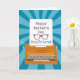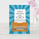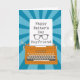 Une machine à écrire vintage orange avec un arrière - plan de sunburst bleu. Un morceau de papier de la machine à écrire qui a les mots Happy Fête des pères Boyfriend en police de machine à écrire et une silhouette lunettes. Une belle carte de fête des pères pour votre {spec}tacular Boyfriend! © Ness Nordberg