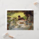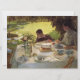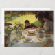 Ce dessin présente un tableau de l'artiste italien Giuseppe de Nittis (1846-1884). Il montre une famille qui prend le petit-déjeuner à une table formelle dans le jardin. Une femme et un jeune garçon sont assis à la table, et il y a un siège vide, peut-être là où le mari de la dame était assis. Il y a des canards et des cygnes qui marchent sur l'herbe dans le jardin, et le garçon tente de nourrir un des oiseaux avec sa nourriture. La famille mange à partir de fines assiettes en porcelaine et il y a du lin blanc sur la table. Un bouquet de fleurs dans un vase sur la table. L'art original a été peint par Giuseppe de Nittis en 1883.