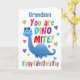 Une carte de Saint-Valentin spéciale pour votre petit-fils. Cette carte de vœux lumineuse et amusante présente un dinosaure bleu, des cœurs jolis et un texte coloré disant 'Tu es dino-mite'. Un design mignon pour les enfants.