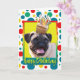 Célébrez un anniversaire avec cette carte de voeux lunatique de chien de carlin. Le petit gâteau étant équilibré là-dessus est la tête, cette conception est sûre d'apporter un sourire et rit nerveusement ! Le BTW, cette conception a plusieurs versions, avec différentes couleurs d'arrière - plan. Il y a également une invitation à une version de partie.