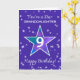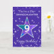 Laissez votre petite-fille se sentir spéciale pour son 9ème anniversaire avec ce design joyeux et coloré ! Une grande étoile d'aquarelle, qui brille dans un mélange de violets, de bleus, de roses et de verts, occupe le devant de la scène dans un décor de périwinkle capricieux. Les étoiles texturées plus petites scintillent tout autour, ajoutant au plaisir. Une façon joyeuse et amoureuse de dire : "Vous êtes une star aujourd’hui et tous les jours!"