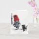 Petite fille mignonne portant un casquette d'hiver rouge marche son chiot noir