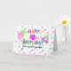 Une carte d'anniversaire amusante pour une petite-fille de 3 ans avec des confettis dans l'arrière - plan aux couleurs pastel, le centre avec coloré "Happy 3ème anniversaire" et "Grandgirl" en noir. Sur le côté gauche des mots, vous trouverez un ballon à points de polka rose et un ballon à points de polka vert, un casquette de soirée à droite.