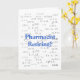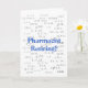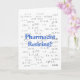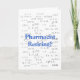 Carte de voeux du pharmacien à la retraite, "Vous manquerez beaucoup". Arrière - plan de carte contient des abréviations latines utilisées par les pharmaciens.