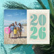 Envoyez vos vœux de Nouvel An avec style grâce à cette carte postale photo moderne pour 2026 ! Avec de grands chiffres "2026" turquoise décoratifs à droite et un espace pour une photo personnalisable à gauche, cette carte postale est parfaite pour partager un moment de vacances à la plage préféré ou n'importe quelle photo personnelle. Un message "Bonne année" de style manuscrit blanc apparaît sur un ciel bleu vibrant, tandis qu'un message décontracté dit : "À l'année 2026 – Santé, la famille Brown". Tous les éléments de texte sont entièrement personnalisables, ce qui la rend idéale pour les familles ou les couples qui envoient des vœux décontractés et joyeux — que ce soit depuis un voyage de vacances ou depuis chez eux.