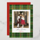 Envoyez des voeux de vacances intemporels avec cette carte photo de Noël classique avec un motif traditionnel à plaid, agrémenté d'élégants détails dorés. Le devant est conçu pour présenter votre photo de famille personnalisée, tandis que le plaid festif ajoute chaleur et charme. Idéal pour partager des cartes de fin de année personnalisés, des cartes de Noël familiales personnalisées et des voeux photos festifs. Customisez facilement avec votre propre photo et message pour créer une carte de Noël unique que les proches chériront.