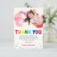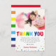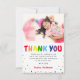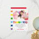 Remerciez vos amis et votre famille d'avoir rendu l'anniversaire de votre enfant si spécial avec ces jolies cartes de remerciement pour anniversaire d'enfant. Mettez en valeur une photo préférée de la fille ou du garçon d'anniversaire, accentuée de lettres 'MERCI' arc-en-ciel et de points ludiques. Le message de remerciement est simple à personnaliser, ce qui rend votre gratitude encore plus spéciale. Faites durer vos souvenirs et envoyez vos remerciements avec style.