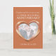 Carte d'anniversaire de mariage en cuivre personnalisez avec votre choix de destinataire, année de mariage et photo et mots à l'intérieur. Exemple de texte : Fille et gendre pour votre anniversaire de mariage de cuivre 7 ans 25 mai 2021 à 2029. Effet de cœur en métal bronze et design de Sarah Trett pour www.mylittleeden.com sur zazzle.