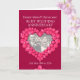 Personnalisez cette carte d'anniversaire de mariage rubis avec vos parents, photo, année de mariage et mots à l'intérieur. Exemple de texte : Chers Maman & Papa pour votre anniversaire de mariage rubis 25 mai 1984 à 2024. Effet de cœur en rubis rouge et design par Sarah Trett.