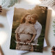 Célébrez la saison et l'arrivée de votre bébé avec cette carte de vacances intemporelle. Comprend un espace pour une photo de maternité et des salutations personnalisables. Idéal pour les révélations de Noël et de fin d'année.