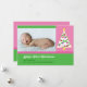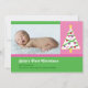 Carte photo fille mignonne et colorée. Dispose d'un arbre de Noël blanc sur une palette de couleurs rose et verte aux accents lumineux. Moderne et élégant. Ajoutez votre propre image et votre propre libellé. Idéal pour le premier Noël de bébé. Peut également être customisé pour une carte familiale.