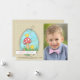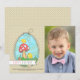 Envoyez les salutations de Pâques à la famille et aux amis avec ce carte photo lunatique comportant une fenêtre en forme d'oeuf avec deux poussins de bébé jouant près d'un champignon. (Point de gel)